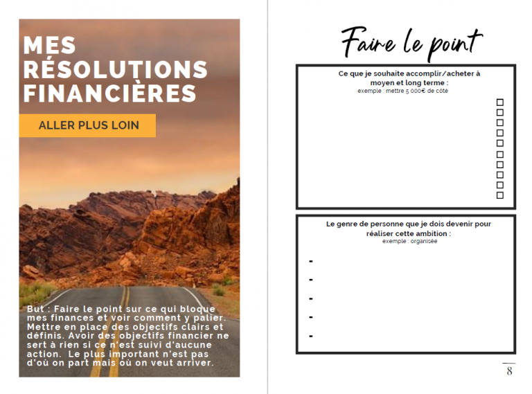 Faire le point sur ce qui bloque mes finances et voir comment y palier. Mettre en place des objectifs clairs et définis.